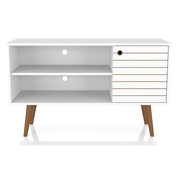 TV Stand,Mid Century,42.52",White