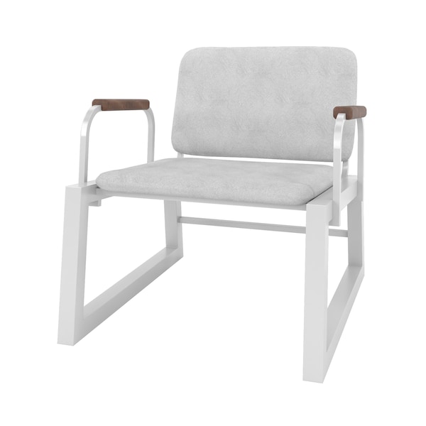 Modern Lower Accent Chair for Living Room Use. * Measures: 23.62 in. Length, 25.98 in. Height, 29.33 in. Depth. * Frame Made of Tube Steel with Painted Finish. * Upholstered in Sleek Thin Foam Fill for Simplistic Style and Comfort. * Features Solid Wood Accents on Arm Design. * For maintenance and better preservation of the chrome product, the surface must not be exposed to humidity and to the accumulation of dust.* Do not use damp cloths, chemicals and rough materials for cleaning. Every 30 days, clean the product with flannel and apply polishing wax. * Perfect for Subtle Lounge Settings. * Delivered to you Fully Assembled! No Assembly Required!