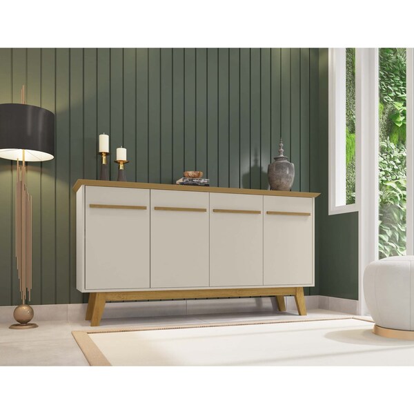 Update your dining area or living space and entertain in style, with the Yonkers sideboard that acts as a buffet and storage center, in the perfect blend of mid-century design and modern functionality. Cabinet style doors with a soft close feature offer ample space for tucking away dishes, tablecloths, and dinnerware to host ultimate dinner parties. Add candlesticks, framed photos, or a mail tray on its smooth base to personalize the piece and make it your own. Beautiful craftsmanship and intricate detailing shines, with durable splayed wood legs, beveled top, and sleek handles to finish.