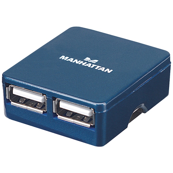 The MANHATTAN 4-Port High-Speed USB 2.0 Micro Hub features an ultrathin design that easily adds four Hi-Speed USB 2.0 ports to desktop and notebook computers, expanding connectivity for keyboards, mice, web cameras and other peripherals. Its high-speed ports are USB 1.1 compatible to support older devices and provide data transfer speeds up to 480Mbps for external storage, printing and other activities. A durable plastic case, compact size and bus power make it easily transportable to add USB connectivity almost anywhere. Installation is simple with Plug and Play and hot-swappable capabilities and a built-in USB cable that quickly connects the Hi-Speed USB 2.0 Micro Hub to any USB port.