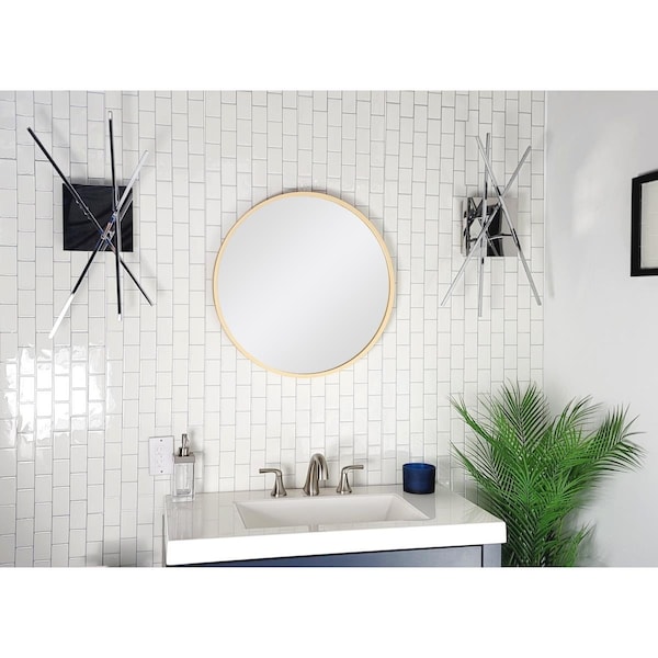 24 x 24 in. Thompson Round Solid Wood Framed Wall Mirror Natural Wood