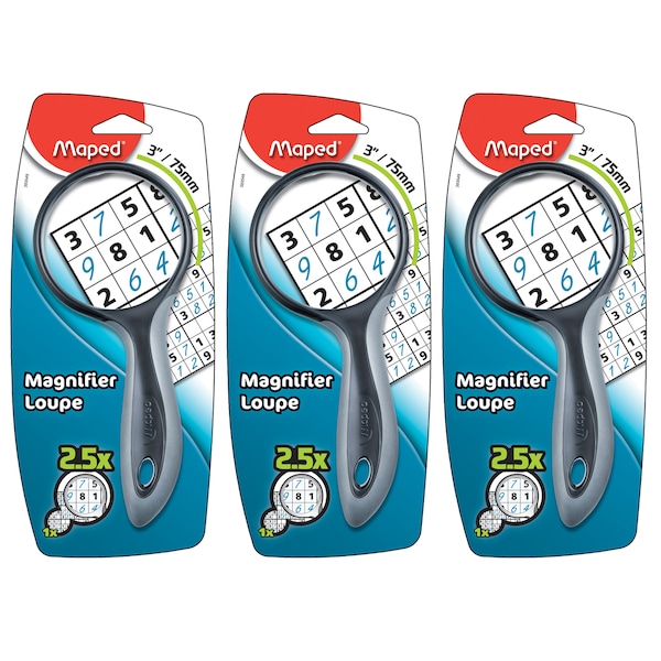 Ergologic Large 2.5X Magnifying Glass, 3in, Assorted Colors, PK3