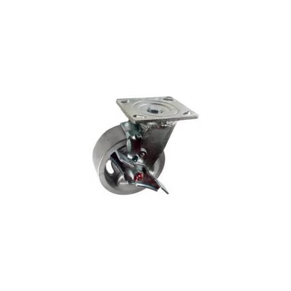 5"X2" Cast Iron Wheel Swivel Caster W/ Top Lock Brake - 1,200 Lbs Cap