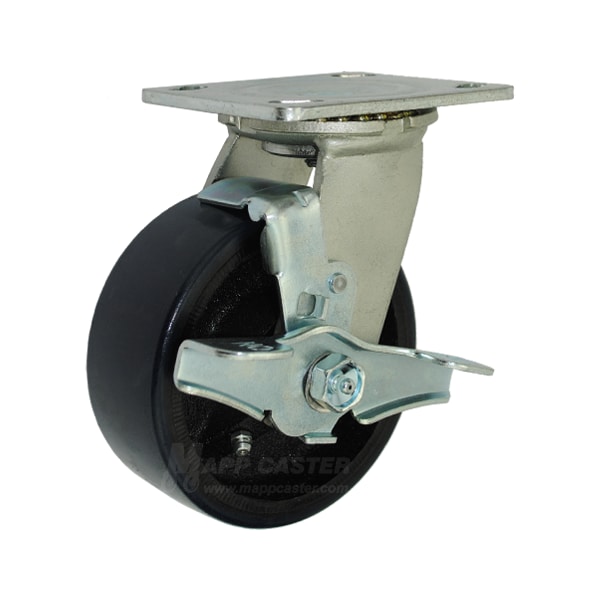 5"X2" Poly. on Iron Wheel Swvl Caster W/ Top Lock Brake, 1,250 Lbs Cap