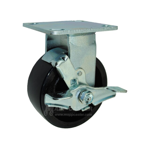 5"X2" Polyurethane on Iron Wheel Rigid Caster W/ Brake - 1,100 Lbs Cap