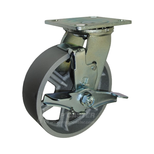 6"X2" Cast Iron Wheel Swivel Caster W/ Top Lock Brake - 1,250 Lbs Cap