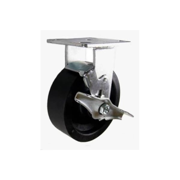 6"X2" High Temp Nylon Wheel Rigid Caster W/ Brake - 1,200 Lbs Cap