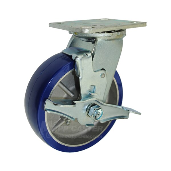 6"X2" Poly. on Aluminum Wheel Swivel Caster W/ Brake, 1,200 Lbs Cap