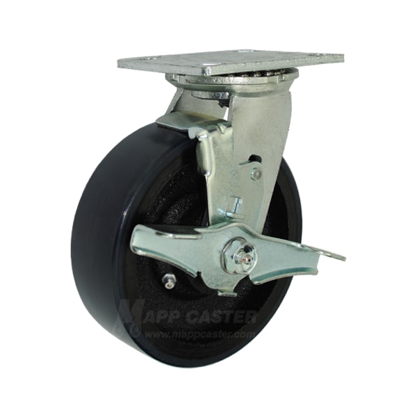 6"X2" Poly. on Iron Wheel Swvl Caster W/ Top Lock Brake, 1,250 Lbs Cap