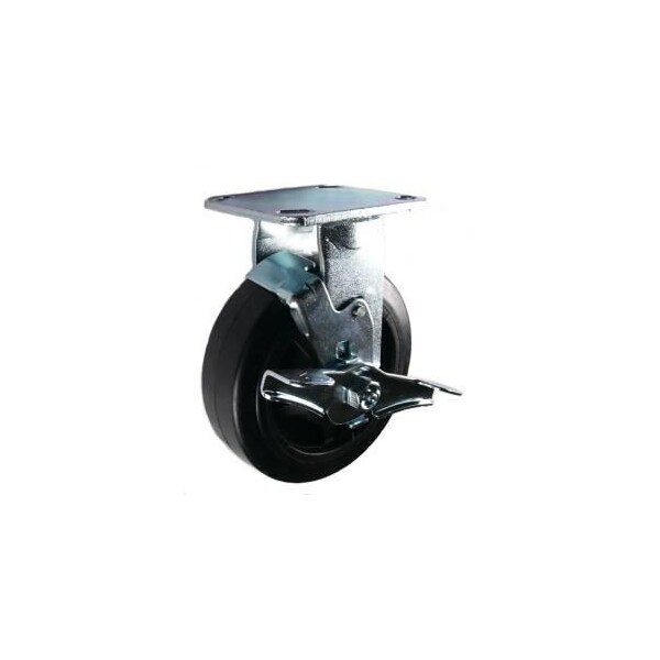 6"X2" Rubber on Nylon Wheel Rigid Caster W/ Brake - 500 Lbs Cap