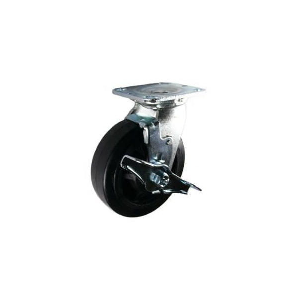 6"X2" Rubber on Nylon Wheel Swvl Caster W/ Top Lock Brake, 500 Lbs Cap