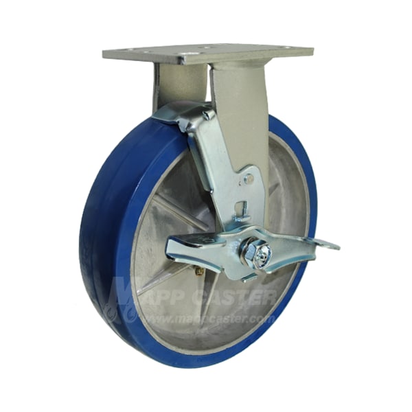 8"X2" Poly. on Aluminum Wheel Rigid Caster W/ Brake, 1,250 Lbs Cap