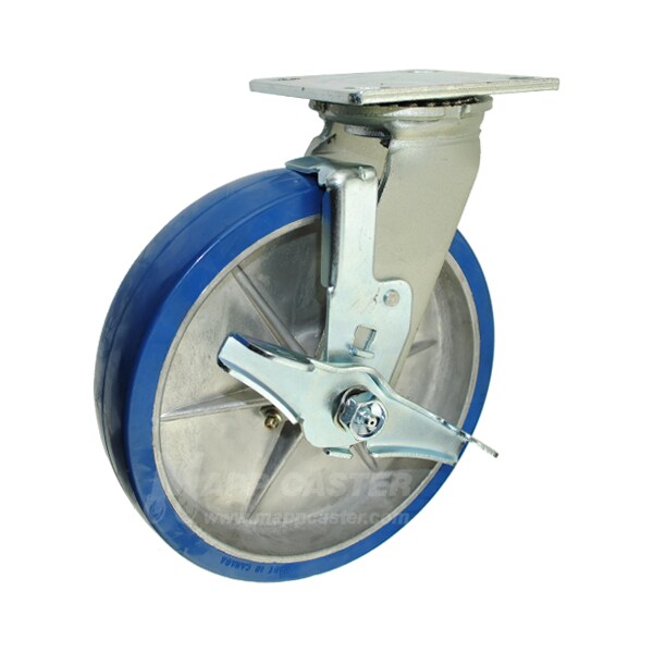 8"X2" Poly. on Aluminum Wheel Swivel Caster W/ Brake, 1, 250 Lbs Cap