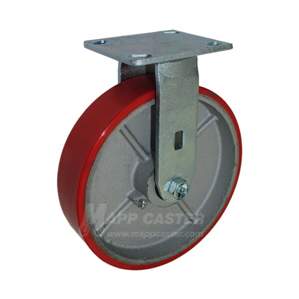 8"X2" Red Poly on Iron Wheel Rigid Caster - 1,250 Lbs Capacity