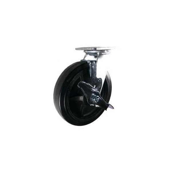 8"X2" Rubber on Nylon Wheel Swvl Caster W/ Top Lock Brake, 600 Lbs Cap