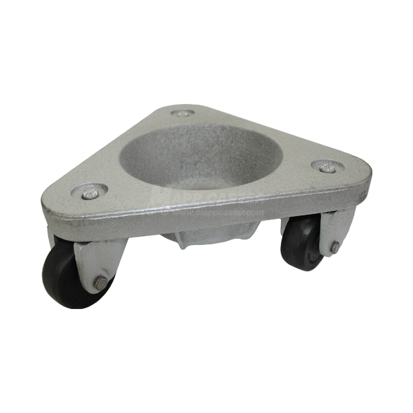 This heavy duty all purpose dolly is designed for industrial use & is built to last. The frame is made of a heavy duty cast iron and has a round recessed base for equipment with legs. The use of these dollies can accommodate long & awkward objects that other dollies can't. Items can also be place on top of the dolly. Each dolly has a capacituy of 375 pounds and a combination of four of these tri-wheel dollies can give you a capacity up to 1,500 lbs when the weight is distributed evenly. Made in the USA!
