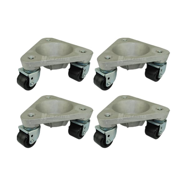 This set of four heavy duty all purpose dollies designed for industrial use & is built to last. The frame is made of a aluminum and has a round recessed base for equipment with legs. The use of these dollies can accommodate long & awkward objects that other dollies can't. Items can also be place on top of the dolly. Each dolly has a capacituy of 600 pounds and a combination of four of these tri-wheel dollies can give you a capacity up to 2,400 lbs when the weight is distributed evenly. Made in the USA!