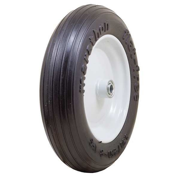 Flat-Free Wheel, 350 lb Load Rating, Ribbed Tread, 13 5/16 in Wheel Dia., 2 in Wheel Width, For Axle Size 5/8 in, 3.50/2.50-8, Standard Tire Rim Type, Center Mount Hub Position, 3 in Hub Length, Steel Hub Material, Yes Non-Marking