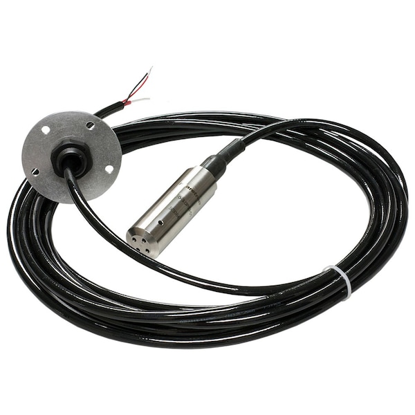 Submersible Pressure Transducer 0-3 PSI Maretron submersible pressure transducers indicate tank levels and can be installed directly in the tank. Please follow these instructions to mount and connect a submersible pressure transducer to an NMEA 2000 network via a Maretron FPM100 Fluid Pressure Monitor. Maretron recommends one of two methods for mounting a submersible pressure transducer in a tank: 1 without a restraining tube, and 2 with a restraining tube. The submersible pressure transducers are designed for a tank with a 5-hole SAE J1810 fitting at the top. Install the mounting plate with cord grip onto the transducer cable, with the rounded hex section of the cord grip facing away from the transducer. Lower the pressure transducer into the tank such that the transducer lies at the lowest point of the tank and tighten the cord grip to secure the cable. On a tank with a flat bottom, the transducer may slide from side to side with the motion of the vessel but will not rotate due to the stiffness of the cable. It is also possible to mount the pressure transducer inside a restraining or focus tube sold separately, Maretron part number TFT-5H. Pressure Transducer Mounting Connect the two wires of the pressure transducer to a free pressure monitoring channel. Connect the red wire from the pressure transducer to the channel's positive + terminal and connect the black wire from the pressure transducer to the negative - terminal of the channel. The example in Figure 1 shows the pressure transducer connected to switch channel 0, with the white wire connected to inP0+in and the brown wire connected to inP0-.in Submersible pressure transducers have a small plastic vent tube in the connecting cable. Use a Maretron DSM Series Display firmware 1.4.7 or higher or a PC running Maretron N2KAnalyzer software version 1.4.19 or higher to configure the connected channels on the FPM100. Supply power to the NMEA 2000 network and verify that the pressure channel indicates a valid pressure reading. Specifications: Operating Range: 0 to 3 PSI 0.207 bar Depth Range Water: 83.1 2.11 m Depth Range Diesel 820 kg/m3: 101.3 2.57 m Depth Range Gasoline/Petrol 750 kg/m3: 110.8 2.81 m Cable Length: 17 ft 5.18 m Sensor Type: Gauge Vent Tube Output: 4 20 m
