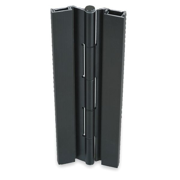 Piano Hinge, Ligature Resistant No, Aluminum Alloy Material, 180 Degrees Range of Motion, Dark Bronze Finish, Without Holes, 600 lb Load Capacity, Non Handed Orientation, 1 in Overall Knuckle Height, 7 ft Door Leaf Height, 7 ft Frame Leaf Height, 1 5/8 in Door Leaf Width, 1 5/8 in Frame Leaf Width, 0.438 in Door Leaf Thickness, 0.438 in Frame Leaf Thickness, 1-3/4 in Required Door Thickness, Length 7 ft, Included Hardware, 0 Holes per Leaf, Full Surface Mounting, 1/4 in Pin Dia.