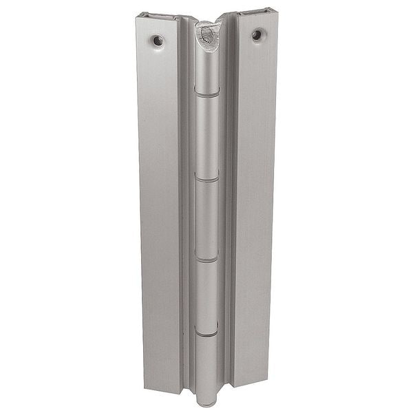 Piano Hinge, Ligature Resistant Yes, Aluminum Alloy Material, 180 Degrees Range of Motion, Aluminum Finish, With Holes, 600 lb Load Capacity, Left Hand Orientation, 2 in Overall Knuckle Height, 8 ft Door Leaf Height, 8 ft Frame Leaf Height, 1 5/8 in Door Leaf Width, 1 5/8 in Frame Leaf Width, 0.125 in Door Leaf Thickness, 0.125 in Frame Leaf Thickness, 1-3/4 in Required Door Thickness, Length 96 in, Included Hardware, 6 in Hole Spacing, 24 Holes per Leaf, Full Surface Mounting, 3/16 in Pin Dia.