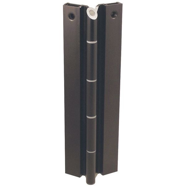 Piano Hinge, Ligature Resistant Yes, Aluminum Alloy Material, 180 Degrees Range of Motion, Dark Bronze Finish, With Holes, 600 lb Load Capacity, Left Hand Orientation, 2 in Overall Knuckle Height, 8 ft Door Leaf Height, 8 ft Frame Leaf Height, 1 5/8 in Door Leaf Width, 1 5/8 in Frame Leaf Width, 0.125 in Door Leaf Thickness, 0.125 in Frame Leaf Thickness, 1-3/4 in Required Door Thickness, Length 96 in, Included Hardware, 6 in Hole Spacing, 24 Holes per Leaf, Full Surface Mounting