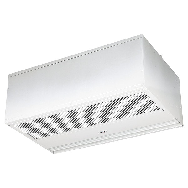 Air Curtain, For Frame Opening Width 4 ft, Mounting Height for Temperature Control 12 ft, Overall Depth 26 in, Overall Height 16 1/2 in, Overall Width 48 in, Profile Type Recessed, Heated/Not Heated Heated, Maximum Air Velocity 1,383 fpm, Mounting Height for Insect Control 10 ft, Maximum Air Volume 1,383 cfm, Nameplate Voltage 230V AC, Air Temperature Rise 14 Degrees F, Sound Level @ 10 ft 66 dBA, Housing Color White, Phase 1, Housing Material Aluminum, Heater Power Consumption 6 kW