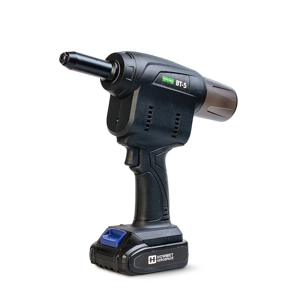 BT-5 delivers reliable performance at a fraction of the cost of other high-performance riveters. Designed to install 3/32" - 3/16" blind commercial rivets in all alloys. With .866" stroke and 2,248lbs pull force. Lightweight at just 4.21lbs. The kit includes the BT-5 riveter, (1) battery, (1) charger, nose tips for 1/8", 5/32" and 3/16" rivets all in a durable carrying case. Optional 3/32" nosepices is available seperately.
