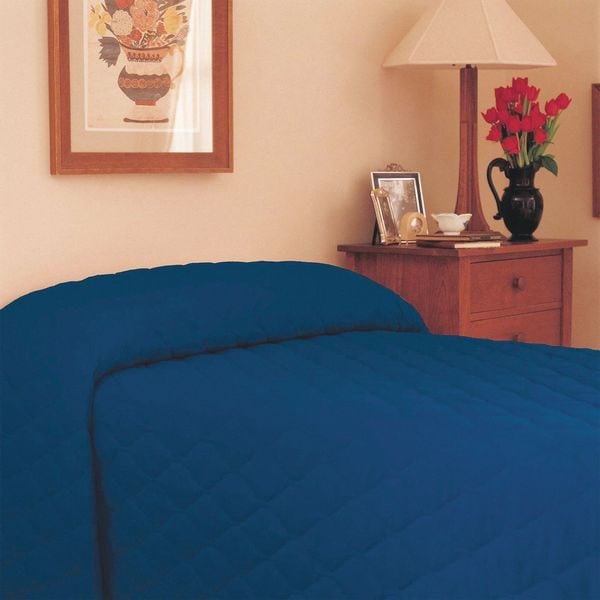 Bedspread, Twin Size, Width 81 In., Length 110 In., Solid Pattern, Color Navy, Face Fabric Poly/Cotton, Back Fabric Poly/Cotton, Polyester Fiberfill, 5 oz. Fill Weight, Stitching Quilted, Washing Instructions Maybe Laundered in Industrial Washer. Use Warm Water Temperatures.Do Not Overload Washer. Do Not Bleach. Tumble Dry Low Only.Do not Overload Dryer.Remove Immediately When Dry.
