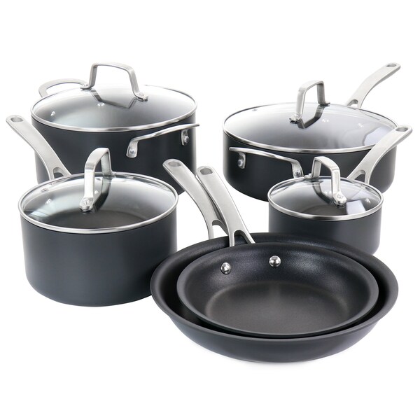 10 Piece Nonstick Hard Aluminum Cookware Set in Matte Black