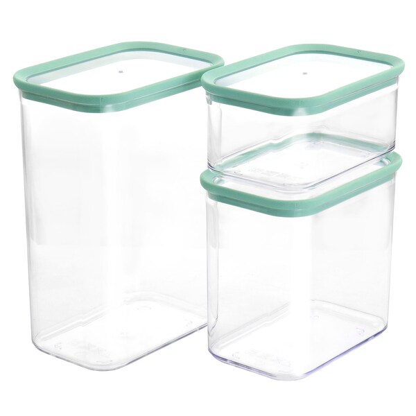 3 Piece Rectangular Plastic Stackable Container Set in Mint Green