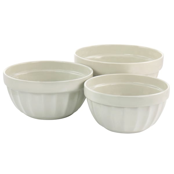 3 Piece Stoneware Bowl Set in Beige