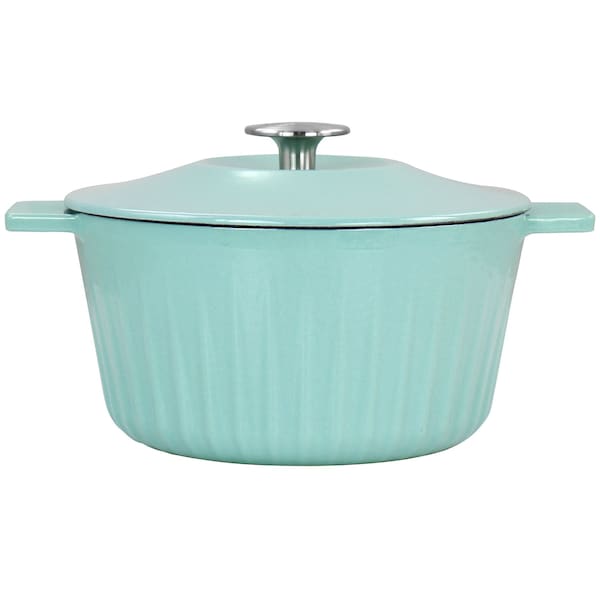Eastholm Enameled Cast Iron 3 Quart Embossed Stripe Dutch Oven with Lid in Turquoise
