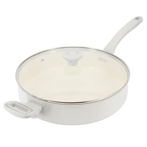 Everyday Rexford 5 Quart Ceramic Nonstick Aluminum Saute Pan with Lid in Linen