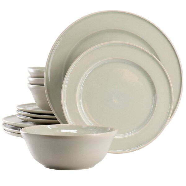 The Martha Stewart Portillo 12 Piece Round Stoneware Dinnerware Set will draw to crowd in to the dinner table. The stoneware body features a reactive glaze top with a matte colored bottom. This juxtaposing match up helps highlight any platted meals. The unique reactive finish provides different textures for every piece. For long lasting use, the set is dishwasher safe and microwave safe. Enjoy the set's classy styling for family dinners, special annual events, or personal lunch breaks.