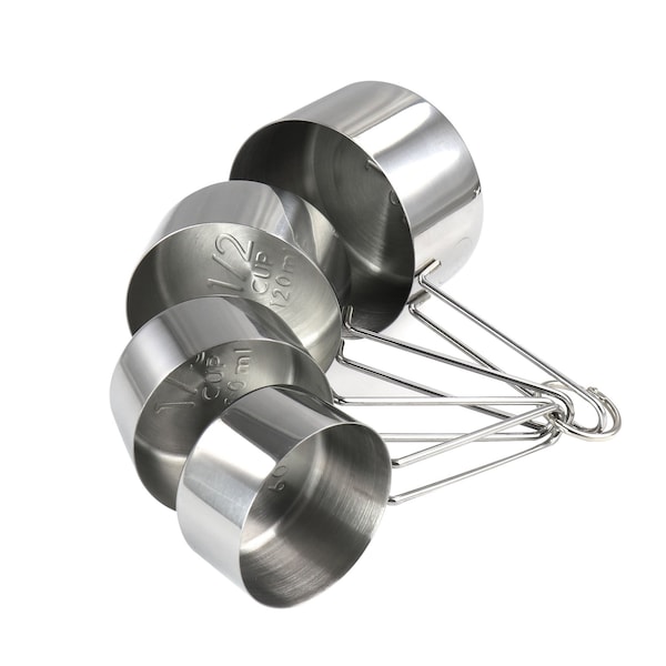 Get precise cooking with the Martha Stewart Stainless Steel Measuring Cups. The 4 piece cups can measure in 1/4, 1/3, 1/2, and 1 cup. Made of durable stainless steel that is built to last. Get precise accuracy for consistent baking and cooking results. Nests together with easy open ring for storage. These Martha Stewart measuring cups are just one of the amazing pieces you can get for your home kitchen. Complete the entire collection to truly feel right at home.