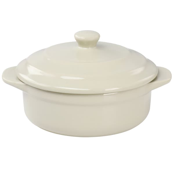 Stoneware Round Mini Casserole with Lid in Beige
