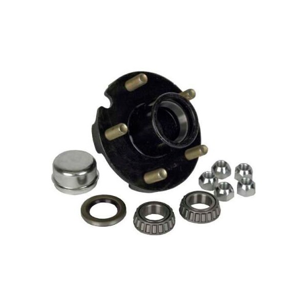 h5-c-pb-b complete trailer axle hub rebuild kit includes hub, bearing cups and cones, grease seal and cap.