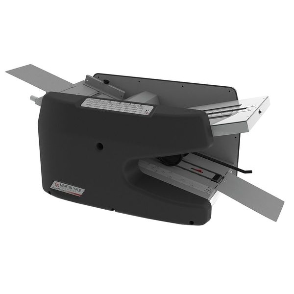Paper Folding Machine, Speed 9000 Sheets Per Hour, Number of Folds 5, Fold Types Double Parallel, Half, Letter, Right Angle, Z-Fold, Feed Table Capacity 150 Sheets, Min. Paper Size 3-1/2 x 5 in, Max. Paper Size 8-1/2 in x 14 in, Paper Weight 16 lb Bond, 70 lb Index, Auto Power Off Yes, Width 32 1/2 in, Height 13 1/5 in, Depth 15 1/2 in, Voltage 115 V, Features Adjustable Feed, Auto Shut-Off