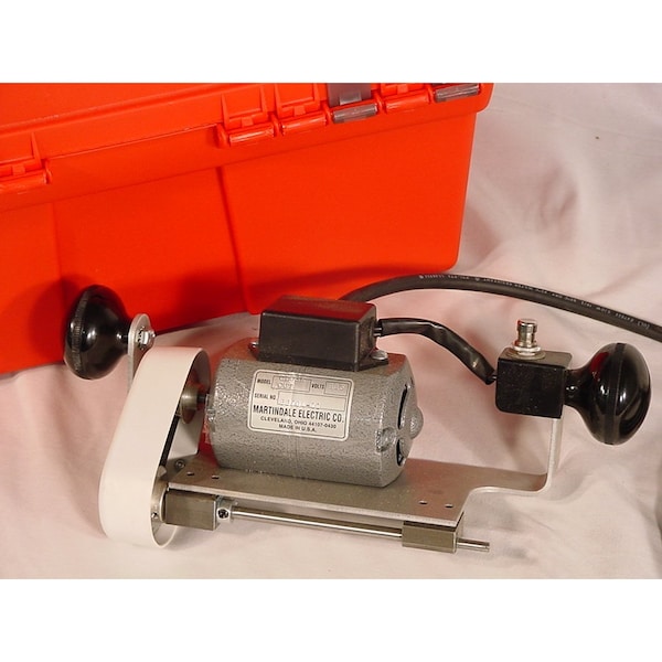 The Close-Cut undercutter was specially designed to finish off a mica slot when it is necessary to cut within 1/8in of a riser. This unit has a straight solid shaft and needle bearings, both front and rear, for smoother operation. While this small machine can be used for undercutting the full length of smaller commutator slot, one of the more substantial Martindale undercutters should be used on larger commutators for most of the cut and the Close-Cut used for the remaining end against the riser. Though it is not recommended, carbide saws may be used successfully with this smaller unit. NEEDS TO BE PAIRED WITH AN AIR FILTER LUBRICATOR