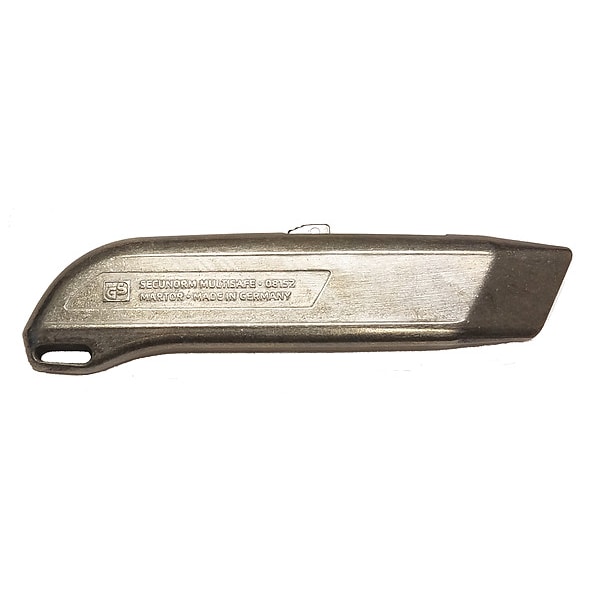 The MARTOR 08152.02 Safety Knife is a great tool for cutting through cardboard, packing materials and other products. It is the perfect choice for warehouse workers and delivery personnel. This straight safety knife has a self-retracting blade that cuts through tough materials with ease. Its zinc handle is corrosion resistant and provides a firm grip even when wet or oily. With its 5 1/2 in length, this gray utility knife is lightweight and easy to use. The carbon steel blade ensures that you get a clean cut every time you use it, while the tether capablity allows you to tether it when not in use. The MARTOR 08152.02 Safety Knife gives you the control you need to get your job done efficiently.