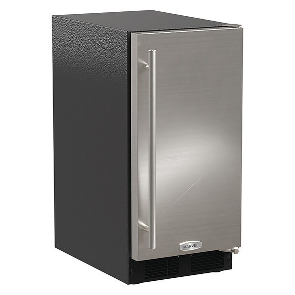 Ice Maker, Condenser Cooling Air, Cube Type Dice, Ice Production per Day 35 lb, Storage Capacity 35 lb, Overall Height 30 in, Overall Width 14 7/8 in, Overall Depth 25 1/2 in, Ice Machine Style Undercounter, Water Supply Connection Type 1/4 in Compression, Voltage 115V, Color Stainless Steel/Black, Control Type Not a Dispenser, Cord Length 6 ft, Current 15 A, Includes Ice Scoop, Standards UL