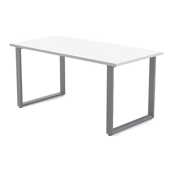 Desk, 60"W x 24"D, Wire Management, White Laminate Silver Finish (Discontinued)