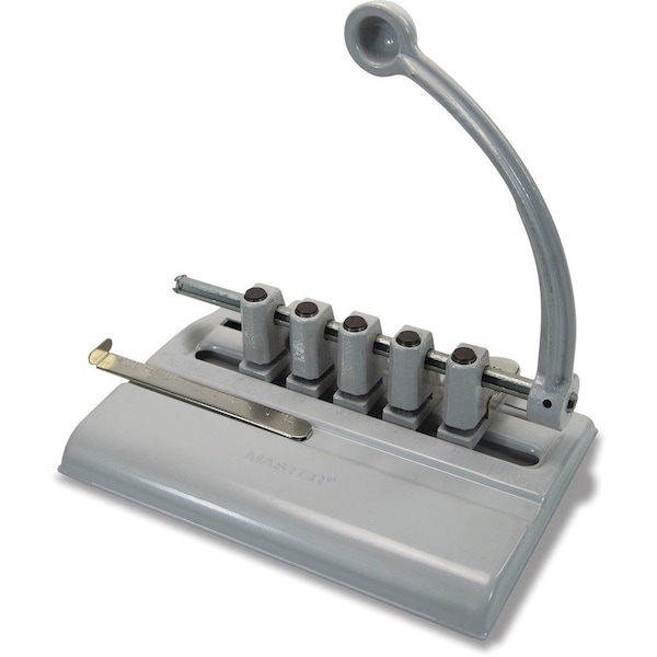 Adjustable medical punch handles punched two, three, five and seven holes for special medical forms. Punch drills 11/32" holes in up to 40 sheets at a time. Design includes an adjustable paper guide and large-capacity chip tray. Adjustable medical punch comes with five punch heads and accepts seven. Punch is made from heavy-gauge steel.