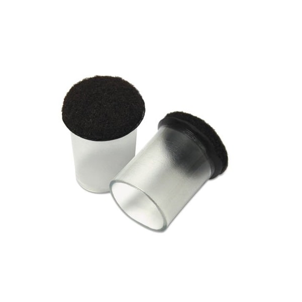 Felt bottoms protect floor surfaces, from scratches and scrapes, covers rough furniture bottoms for smooth, effortless movement. Cushioned felt tip holds stronger and lasts longer than standard felt. Slips on easily, no adhesives, nails or tools required. Recommended for hard floor surfaces. LargeFits 1.13in to 1.25in round legs or 1in square legs. Color: Clear/Gray; Color Family: Clear; Application: Chairs; Tables; Materials: Felt; Plastic.
