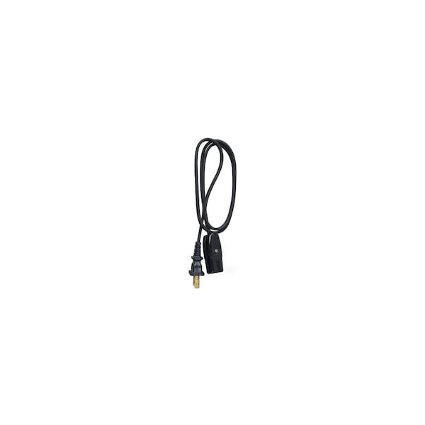 Miniature Plug Appliance Cord, 18/2 HPN, Black, 3-Ft.