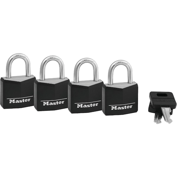 1-3/16'' W. Black Covered Keyed Alike Padlock, 4PK