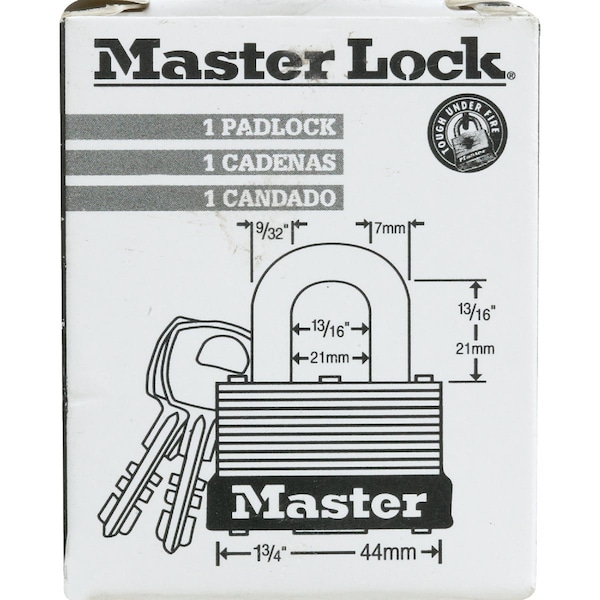 1-3/4 wide laminated steel case. Multi-spring warded locking mechanism. Cadmium rustproofing. Self-locking steel swivel shackle nickel-plated 9/32 diameter. Clearance: vertical 13/16 horizontal 13/16. 2 nickel-plated steel keys 60 key changes. Only SKUs with KA in the model number are keyed alike padlocks and all item ordered from that SKU number would be keyed alike to the 4-digit key number shown in the product description.