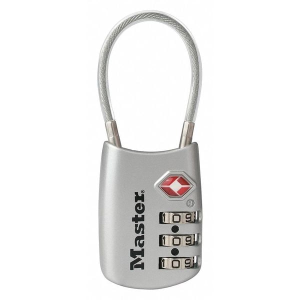 Combination Padlock, Body Dia. 1 3/16 in, Body Finish Anodized, Body Height 1 43/64 in, Body Material Metal, Body Thickness 1/2 in, Body Width 1 3/16 in, Body Color Silver, Control Key Registration Required No, Dial Location Front, For Use With Luggage, Travel, Backpacks, Duffel Bags, Sports Bags, Briefcases, Computer Bags, Key Control No, Key Type Combination, Number of Bumpers 0, Number of Dials 3, Number of Keys 0, Number of Pins 0, Resettable Resettable, Shackle Dia. 1/8 in