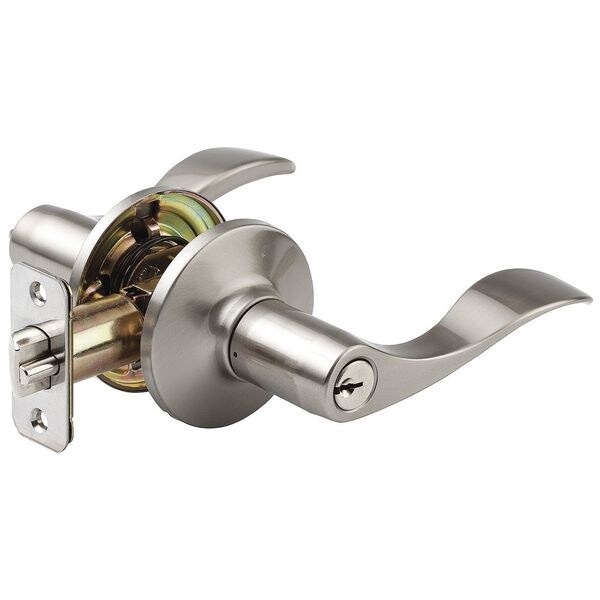 Mechanical, Lever, Cylindrical, Lockset Function Entrance, Lockset Grade 3, Style WL Wave, Lockset Finish Satin Nickel, Keyway Type Kwikset KW1, Key Type Alike, Standards ANSI, ADA Compliant No, Lockset Fire Rating Not Rated, Backset 2-3/8 in or 2-3/4 in, Ligature Resistant No, Handle Material Steel, Zinc, Item Lever, Location Type Residential, Lockset Performance Strength Light Duty, Number of Keys 2, Required Door Thickness 1-3/8 in to 1-3/4 in, Series WL, Strike Dim. 1-3/4 in x 2-1/4 in